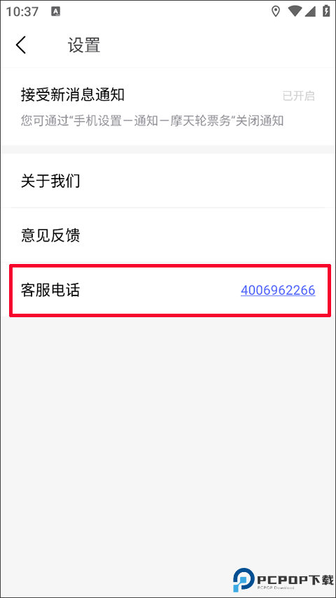 2、在设置当中就能看到客服电话了,客服电话是4006962266。