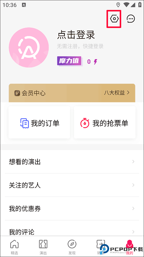 1、打开在本站下载安装好的应用,在我的界面选择并点击右上角“设置”的选项;