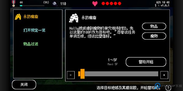 2、拖动右下角的进度条可以设置闯关层数,设定好后点击冒险开始按钮。