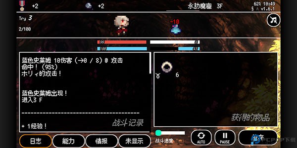 3、整个战斗过程会自动进行,下方会显示战斗日志和物品获得情况。