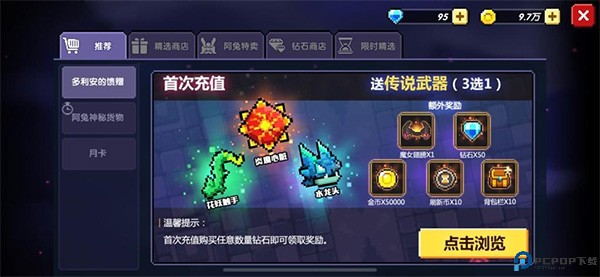 在我的勇者里快速获得神器的方法就是首冲,然后就可以从水龙头、炎魔心脏、花妖触手三把神器里任选其一,有很多才入坑的小伙伴不知道三选一该选谁好,下面就给大家分享一下。