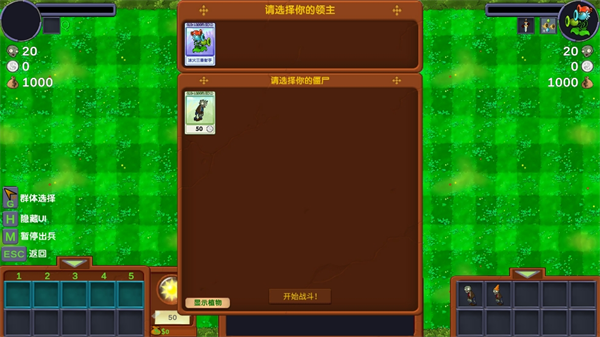 2、在开始阶段,你可以选择任何你所获得的僵尸和植物,组建合适或心怡的阵容。