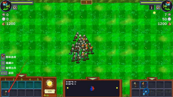 2、选择领主和僵尸炮兵士兵后开始战斗。