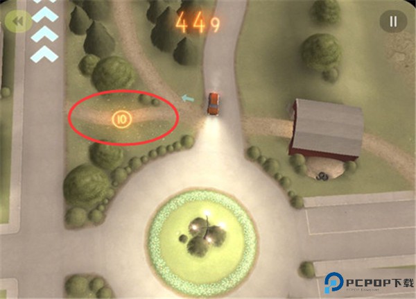 6、游戏中开车的时候会看见地上有圆圈中写着10和圆圈中写着20的图标,那个是分数,在不会撞车的情况下,最好还是吃一下,