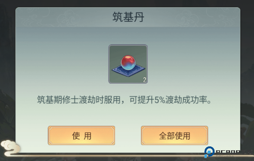 5、灵气外溢时需要渡劫,使用丹药可以提高渡劫的成功率,渡劫失败会扣除修为点。