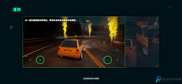 3、当玩家经过玩到时可以在一定速度接近转弯处时,转弯并点击手刹按钮开始漂移