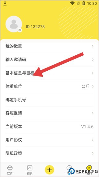 1、我的页面背景简洁明,基本信息与目标选项清晰,点击它就能进入设置体重管理目标的入口,方便用户根据自身情况,规划科学减肥路径。