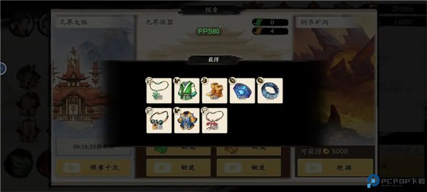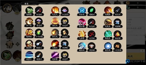 5、图内技能俗称法宝+装备构成,主法宝7以后+任意1法宝合成超武。图没有效果介绍。初始无脑选涌炎术,关卡现在做到合体后期了,刷一把1万+铜币+炼丹药材!所以尽量推到你能推到的最高图,再回来刷实力能过的,过不了图没有奖励。