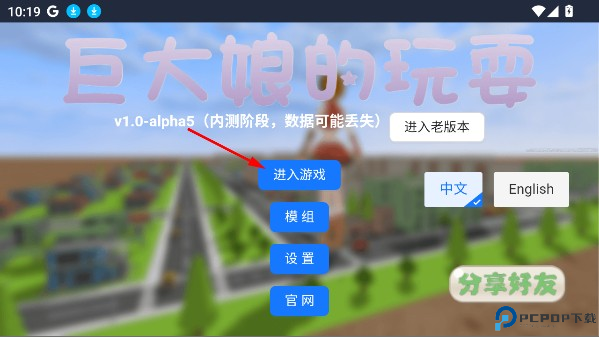 1、启动巨大娘的玩耍游戏,等待场景加载完毕,进入首页后点击开始游戏。