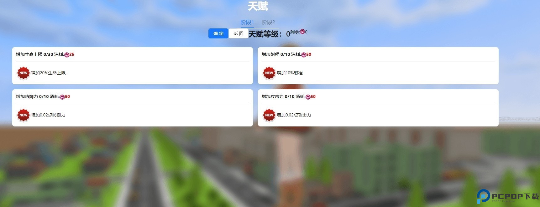 4、进入小人角色的天赋选择页面,强化能力需要消耗宝石,但初始阶段没有宝石,先直接确认继续。
