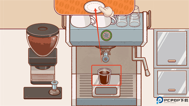 10、制作完咖啡后点击咖啡向上移动进行装盘;