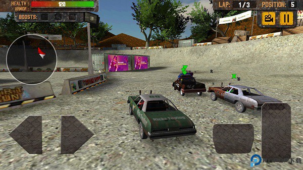 游戏分为两大部分,一是攒钱买车,改装车。二就是是赛场上碰车撞车,各种激情各种竞速。