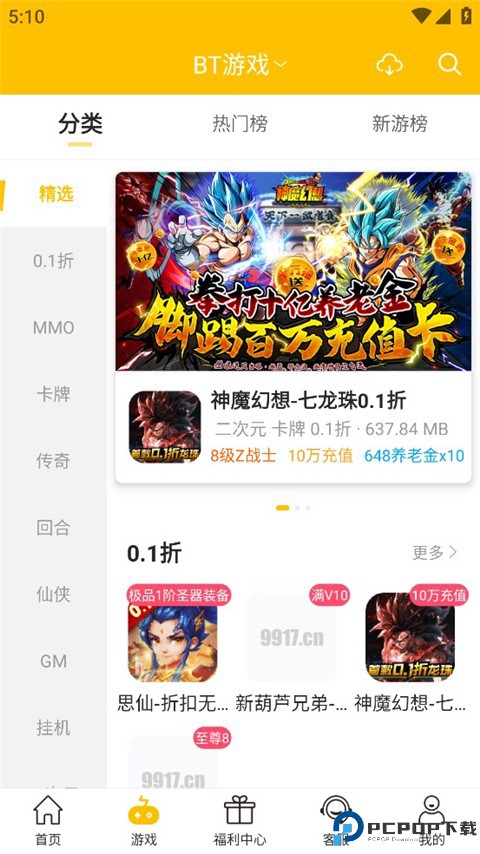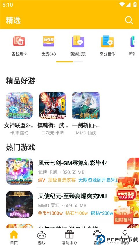 1、下载GM游戏盒子软件后可直接打开,进入后能看到大量精选游戏与福利礼包。