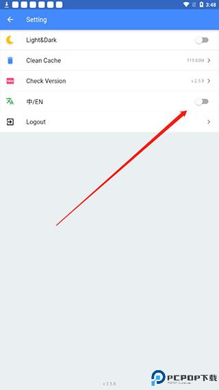 3、在 “涡轮” 界面里找到 “切换中文” 按键。