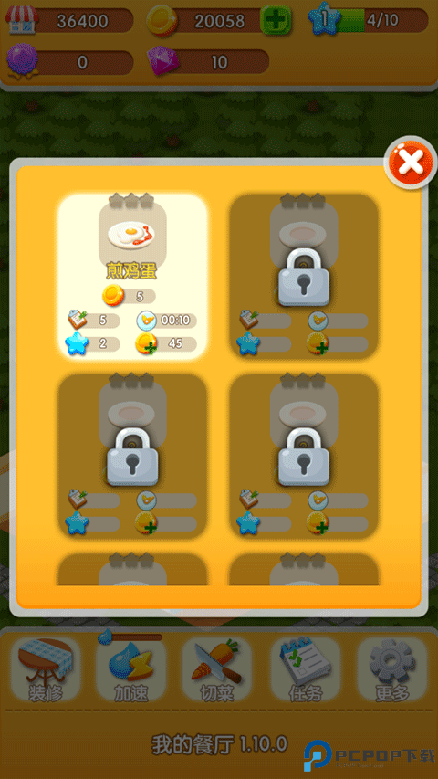2、透过升级厨房来提升自己的能力,用最短的时间来烹饪美食。