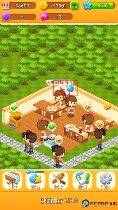3、每个顾客都有情绪,会显示在顾客的头上,玩家尽量保持顾客的好心情。