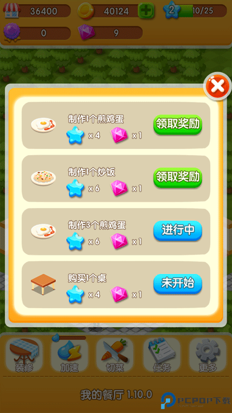 1、通过游戏进程,玩家可以升级餐厅设施、购买更高级的设备和食材,提升服务质量和效率。