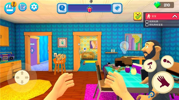 【物品互动系统】玩家需在场景中寻找并使用奶瓶、尿布等关键物品