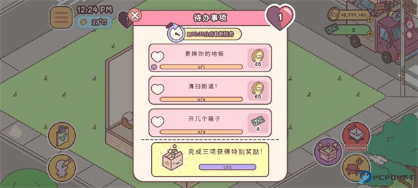 2、需要完成各种任务来获得金币,使用金币可以解锁更多的道具,装饰我们的家园。