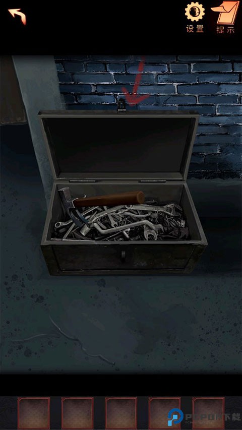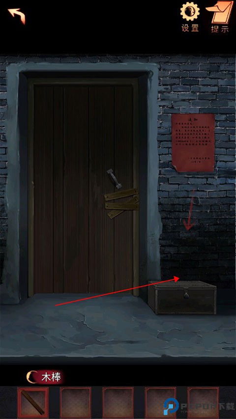 2、点击后方木门,查看墙上的海报,根据上面的线索,四周后的最后一天搬,就是28天后,得出密码是1229,打开工具箱。