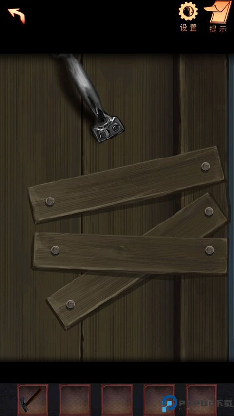 5、对着门木板上的钉子使用道具羊角锤,打开房门。