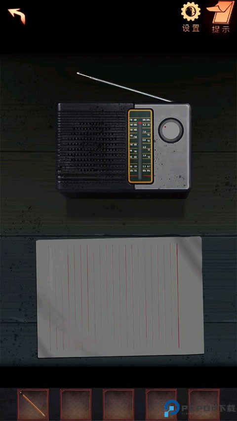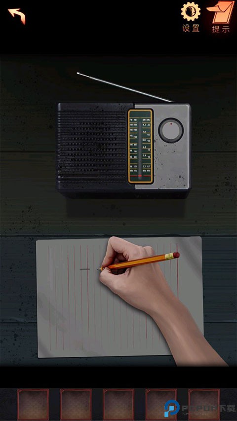 12、点击书桌,给收音机装入【电池】,调到空白频道,发出摩尔斯电码,用【铅笔】记录下来,获得【密码纸】