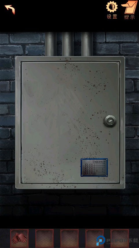 14、点击墙上的电箱,使用道具:电箱钥匙,打开电箱。