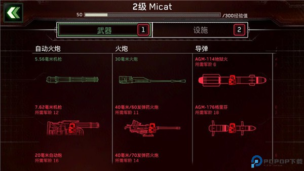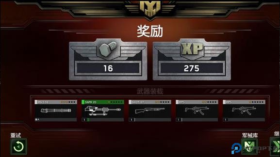 2、在战斗闯关模式中,每一关都设定了关卡的难度分级,在开始任务前,玩家可以在装载中选择战斗中所使用的武器,点击可进行筛选,最多只能带三样武器,需要按等级解锁,点击前往部队可查看地面部队类型以及装载的武器。