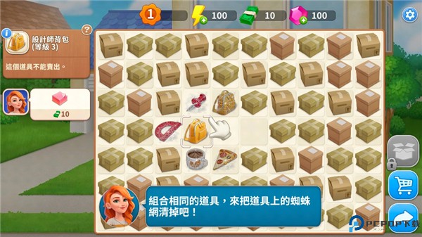 4、组合相同的道具,并将道具上的蜘蛛网清理掉;