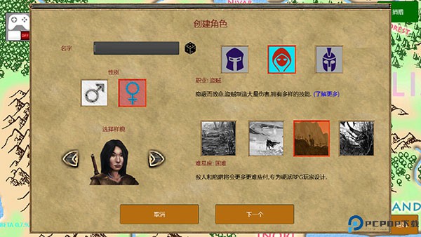 3、这时要创建角色,选择名字、样貌、职业、难易度,关于职业与难易度选择可以看下方的放逐王国攻略信息;