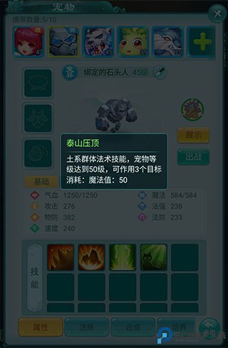 你在升级的过程中还会得到一颗石头人的蛋,里面有一个变异的石头人,也同样很适合用。这很有可能是你得到的第一只变异宠,并且它还是群法宠,一次攻击三个敌人,可以大大提升你团队的输出效率。