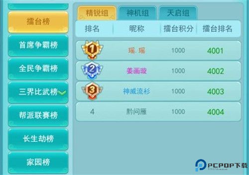 调整之后我们会先根据少侠等级划分为:精锐组、神机组、天启组;再根据少侠排名积分的高低进行排名。