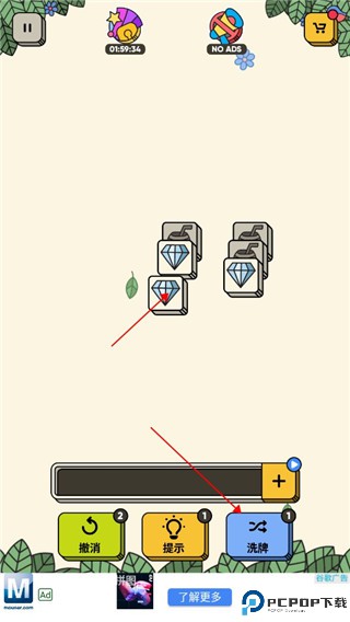 1、开始游戏,点击相同的图案方块来消除掉,当所有方块被清楚后就可以获得胜利。
