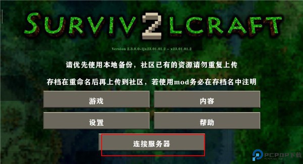 1、首先在本站下载并安装生存战争2.3联机版虫虫助手内置模组,启动游戏后选择连接服务器。