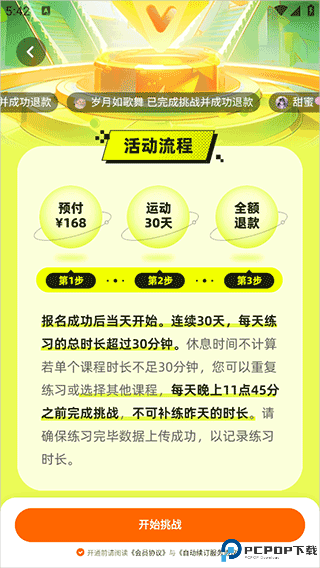 2、这个免费是要预付168元,然后根据活动连续运动30天可全额退款