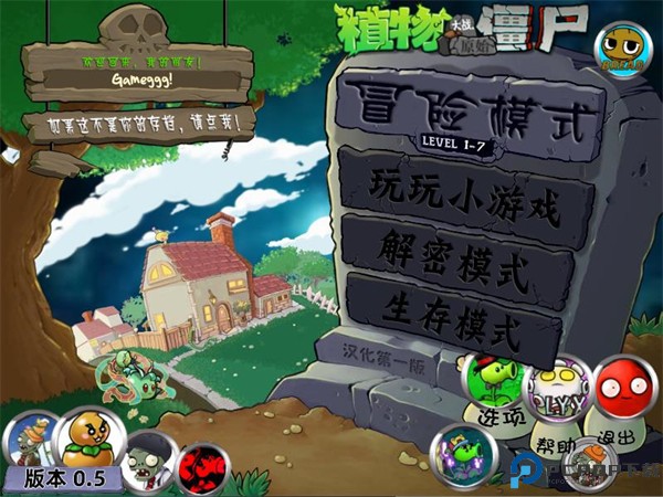 2、进入游戏后点击主界面的冒险模式开始闯关,目前只有第一部分关卡可以游玩。