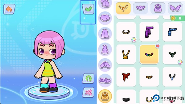 3、为角色挑选五官、衣着等个性化元素,完成后点击页面顶部的勾选按钮确认。