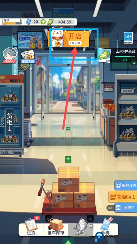 1、打开我的模拟超市抖音版,进入游戏之后,在开店前玩家要先去【进货】