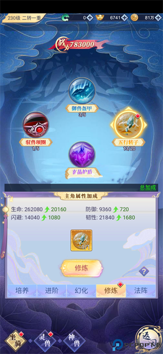 修炼法宝的时候每修炼一次就会增加永久战斗属性,有更好的法宝替换以后前面法宝的属性不会减少和你用的法宝永久增加人物战斗属性。