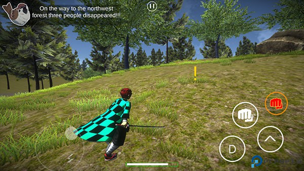 4、在屏幕左侧滑动可以呼出操纵角色前进后退的移动按钮,游戏内左上角是任务目标,对应在任意方位的一个感叹号,控制角色朝着感叹号奔跑。