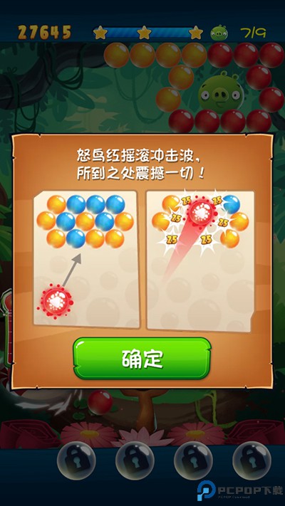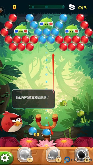 4、游戏操作方法很简单,如果玩过射击泡泡龙游戏就立马能上手游戏,只要向后拉动弹弓瞄准发射泡泡;