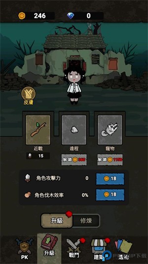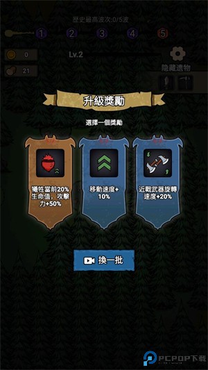 5、当玩家在击败怪物和砍树后,都可以获得经验,提升等级就可以选择一项升级来强化自己。