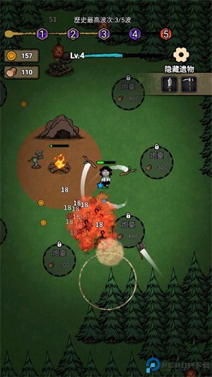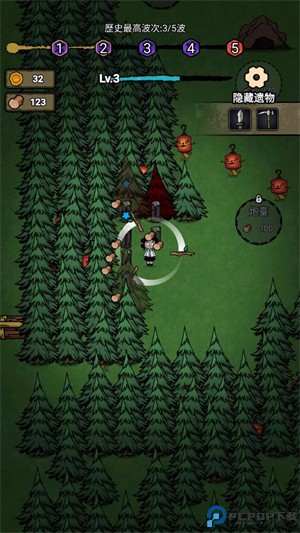 2、之后进入关卡后滑动屏幕控制角色的移动,靠近树木会自动攻击来获得木材和经验。