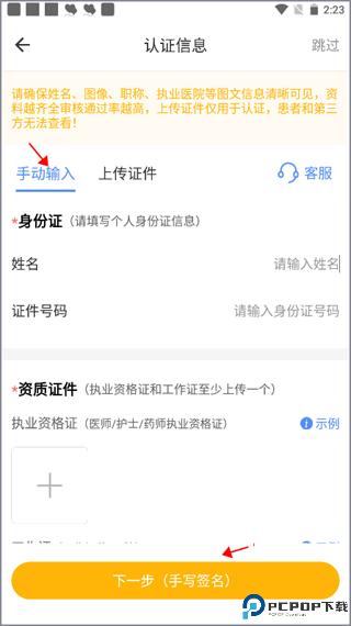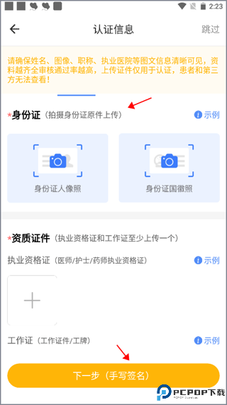 3、一种是上传证件照片,填写完认证信息后,点击下一步。