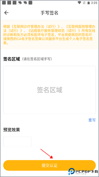 4、在签名区域填写自己的名字,写完后点击“提交认证”,等待后台审核,审核通过后就认证成功了。