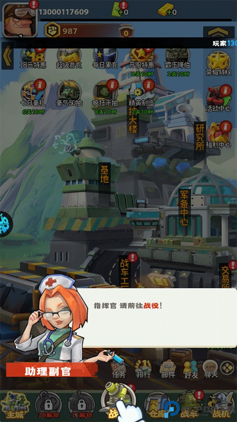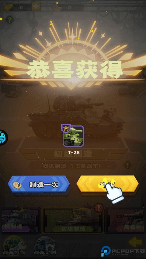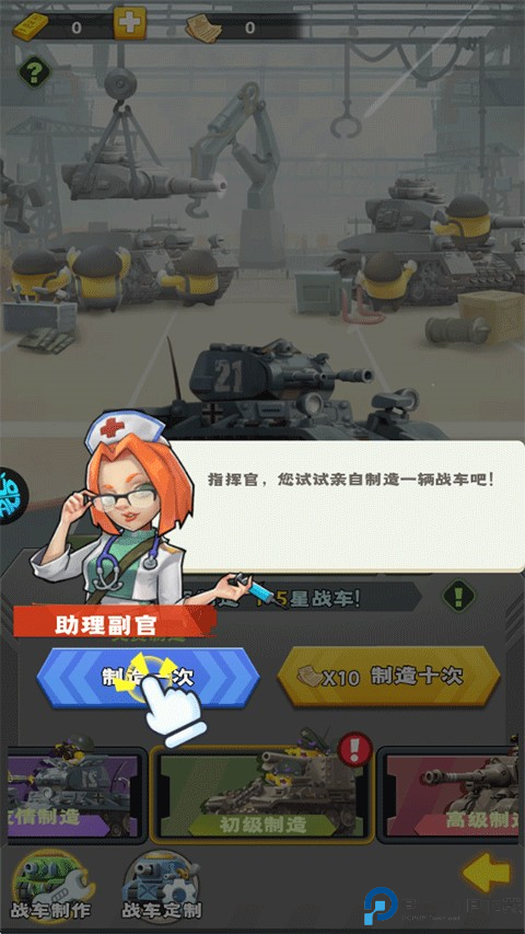 2、进入游戏后,依照游戏指示点击战车工厂;