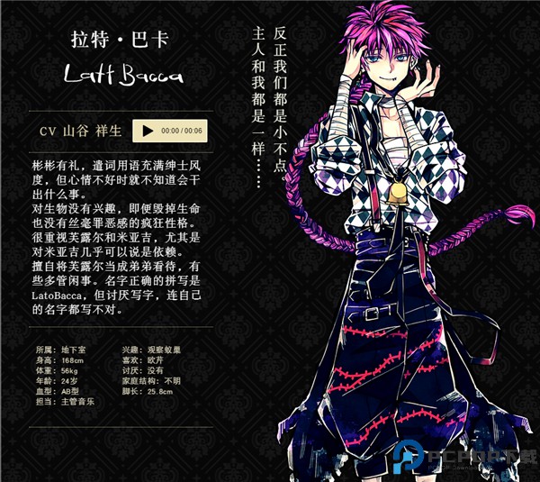 彬彬有礼,遣词用语充满绅士风度,但心情不好时就不知道会干出什么事。对生物没有兴趣,即便毁掉生命也没有丝毫罪恶感的疯狂性格。很重视芙露尔和米亚吉,尤其是对米亚吉几乎可以说是依赖。擅自将芙露尔当成弟弟看待,有些多管闲事。名字正确的拼写是LatoBacca,但讨厌写字,连自己的名字都写不对。