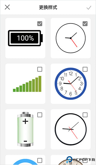4、更换样式里面可以选择各种闹钟、电池以及表格等图标。