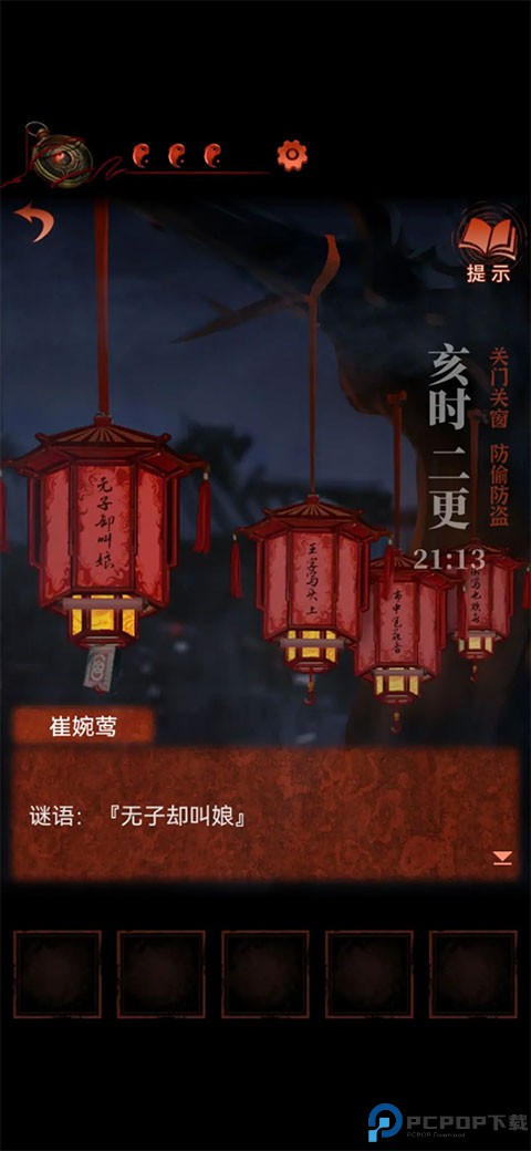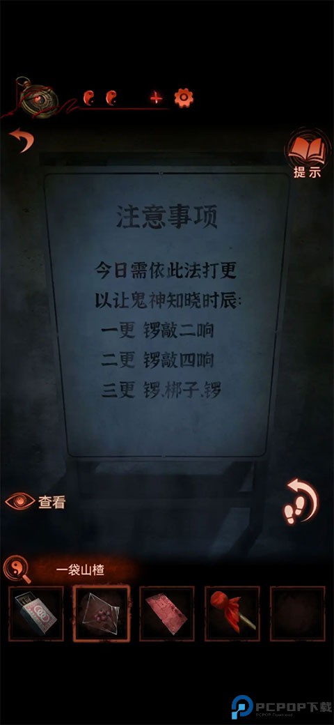 8、中间告示牌点右下角变换得线索,敲左侧白无常铜锣,场景变成一更天。