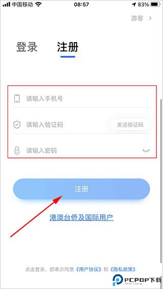 1、在本站下载好软件,进入软件页面后直接点击注册。